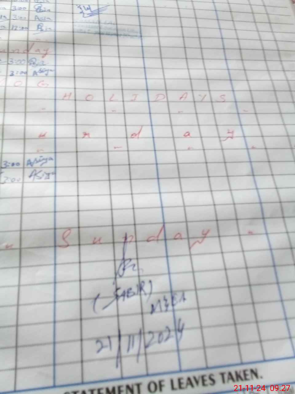 | Monitoring Date: 21-11-2024 | Start Time: 21-11-2024 09:17 AM | End Time: 21-11-2024 09:34 AM | Name of MEA: SA**** HU**** | |