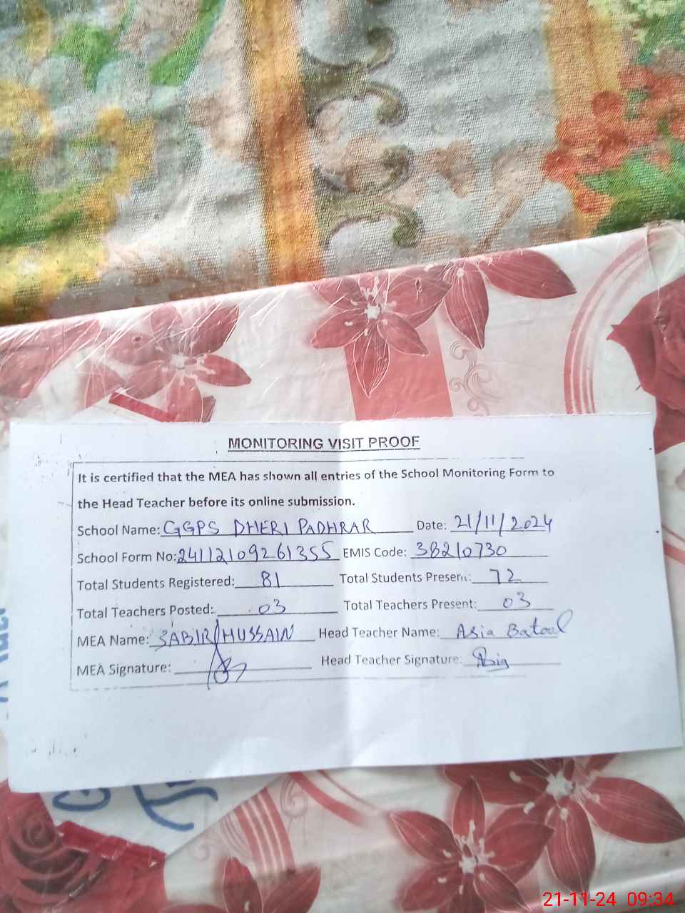 | EMIS Code: 38210730 | Name of School: GGPS DHERI PADHRAR | |||