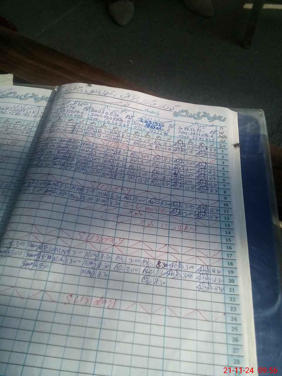 | CNIC | Full Name | Designation | R/C | Absence during last cal. month |