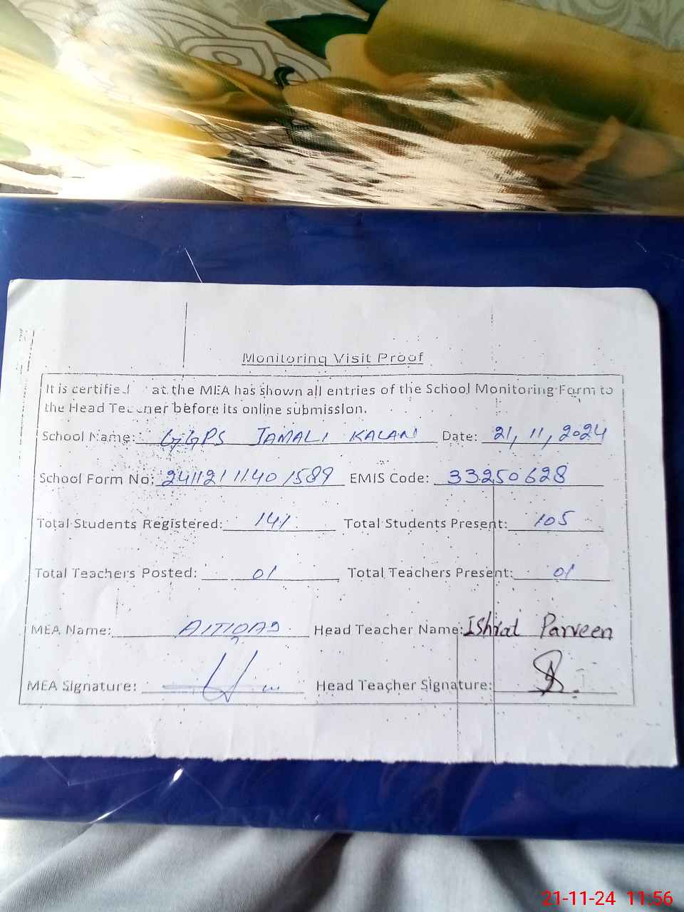 | EMIS Code: 33250628 | Name of School: GGPS JAMALI KALAN | |||