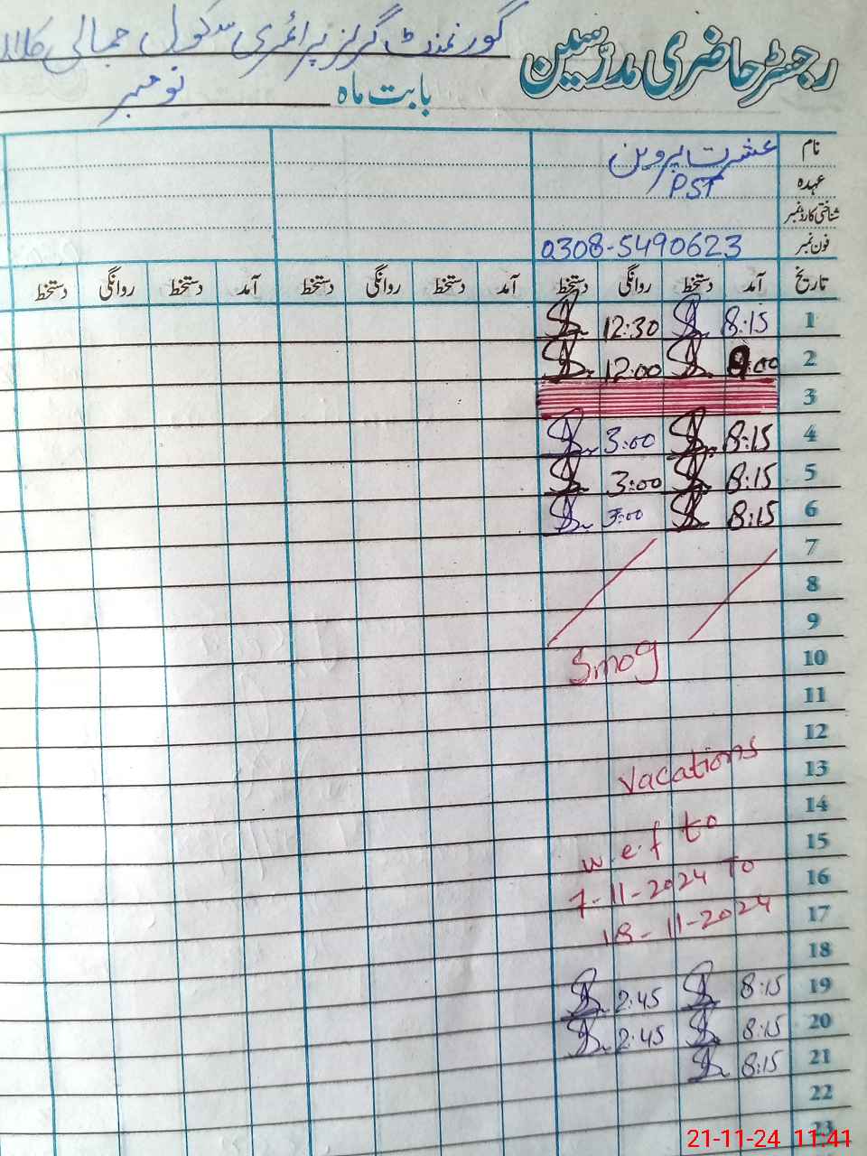 | Name: Su**** Af**** Designation: (School Headmaster's/Headmistress's) PST Phone/Cell Number: 03**** |