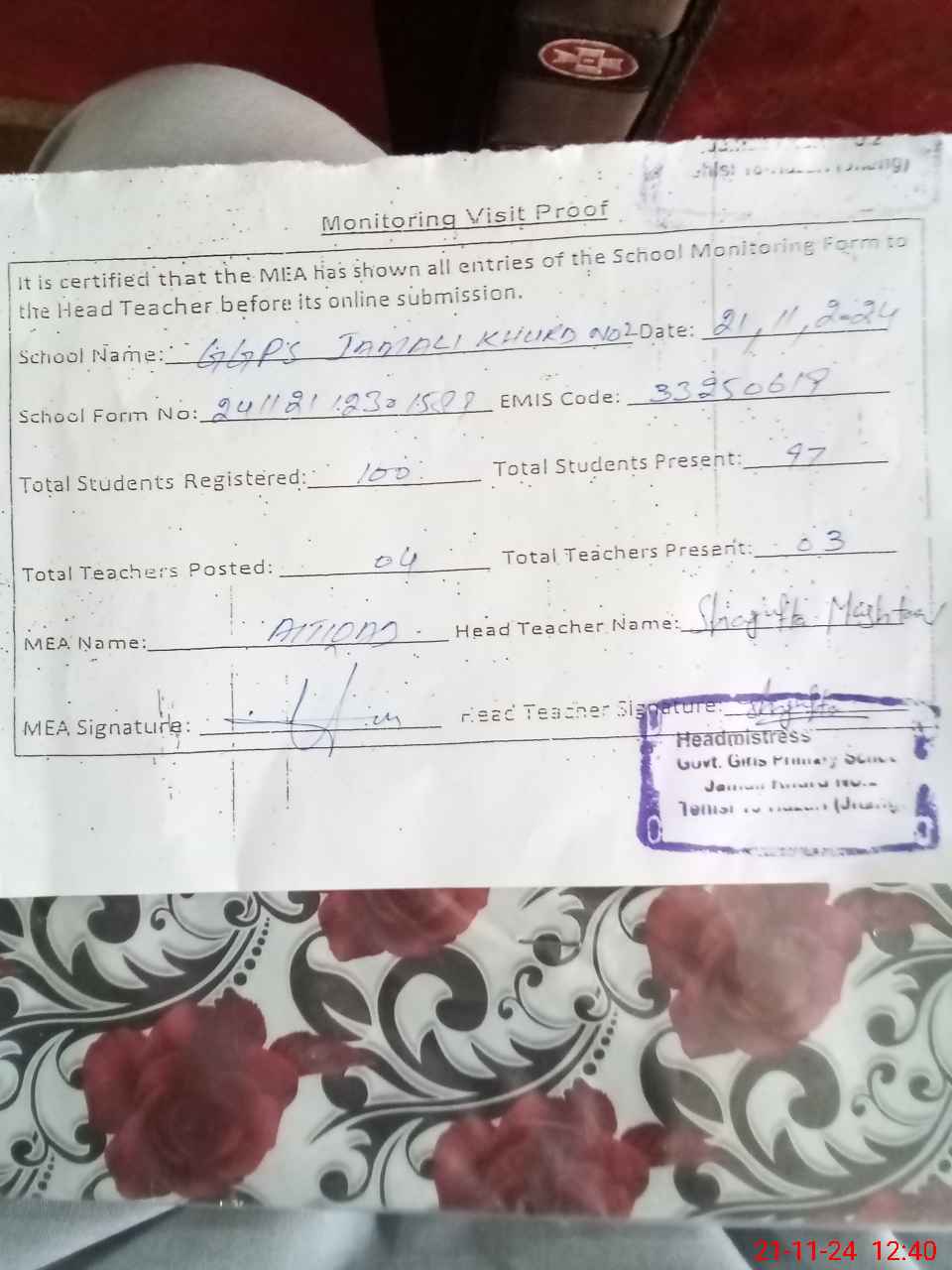 | EMIS Code: 33250619 | Name of School: GGPS JAMALI KHURD NO. 2 | |||