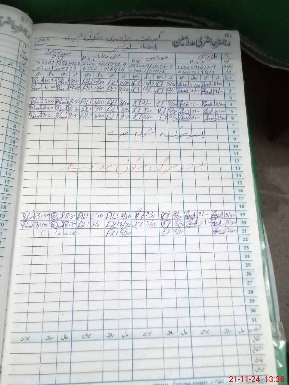 | Name: Mu**** Hu**** Designation: (School Headmaster's/Headmistress's) PST Phone/Cell Number: 03**** |