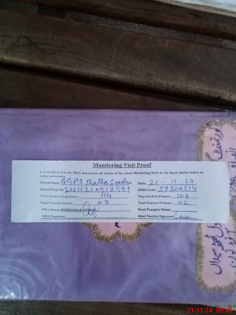 | EMIS Code: 39320514 | Name of School: GGPS THATA SYEDAN | |||
