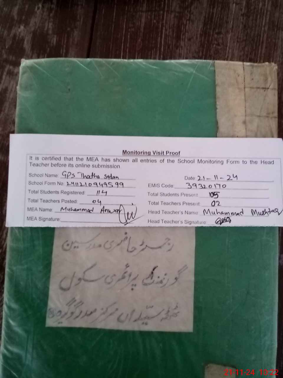 | EMIS Code: 39320170 | Name of School: GPS THATHA SYEDAN | |||