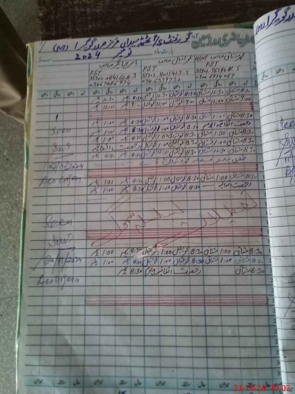 | CNIC | Full Name | Designation | R/C | Absence During Last Calender Month |