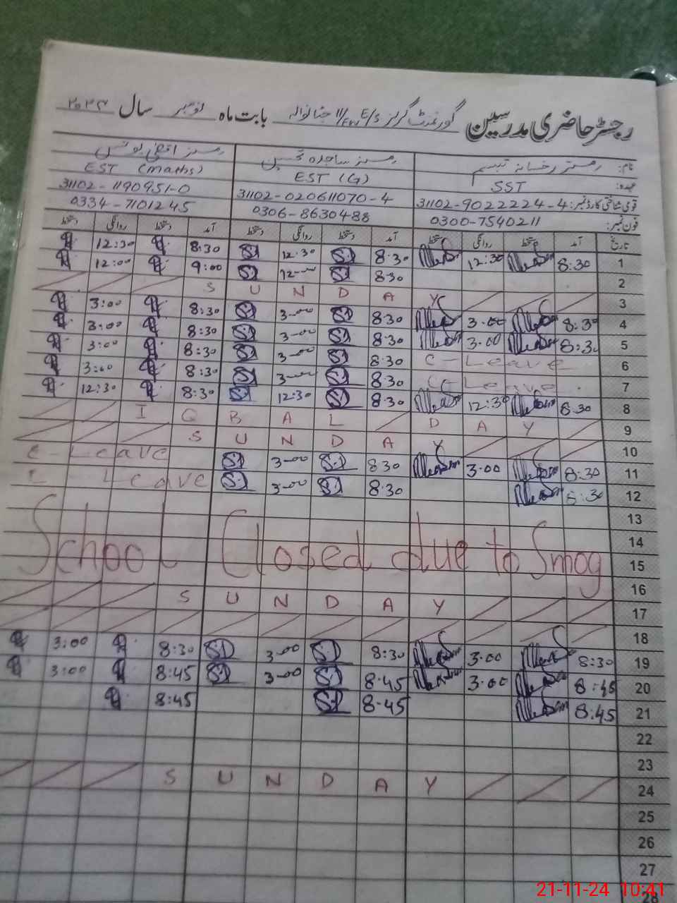 | CNIC | Full Name | Designation | R/C | Absence During Last Calender Month |