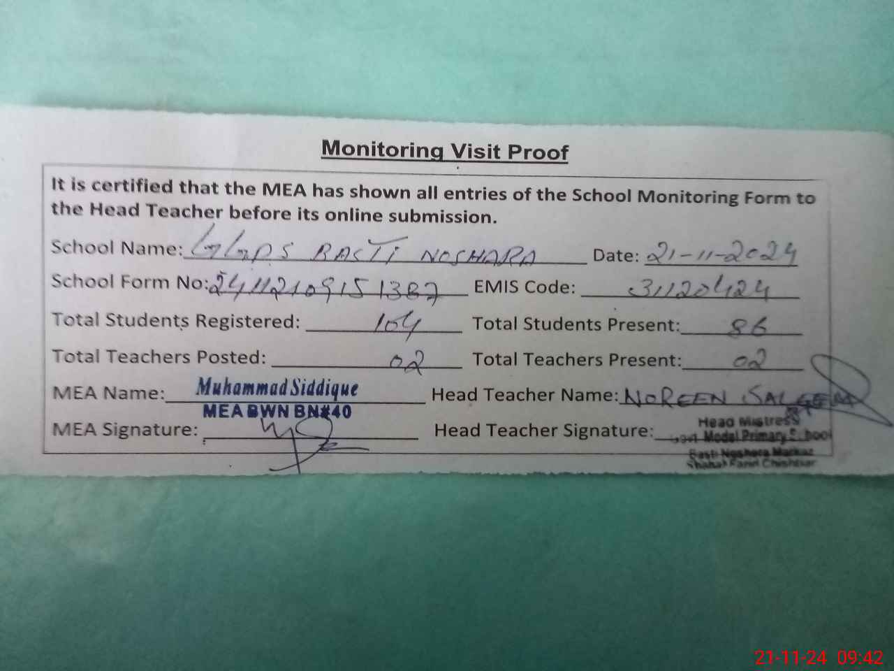 | EMIS Code: 31120424 | Name of School: GGPS BASTI NOSHARA | |||
