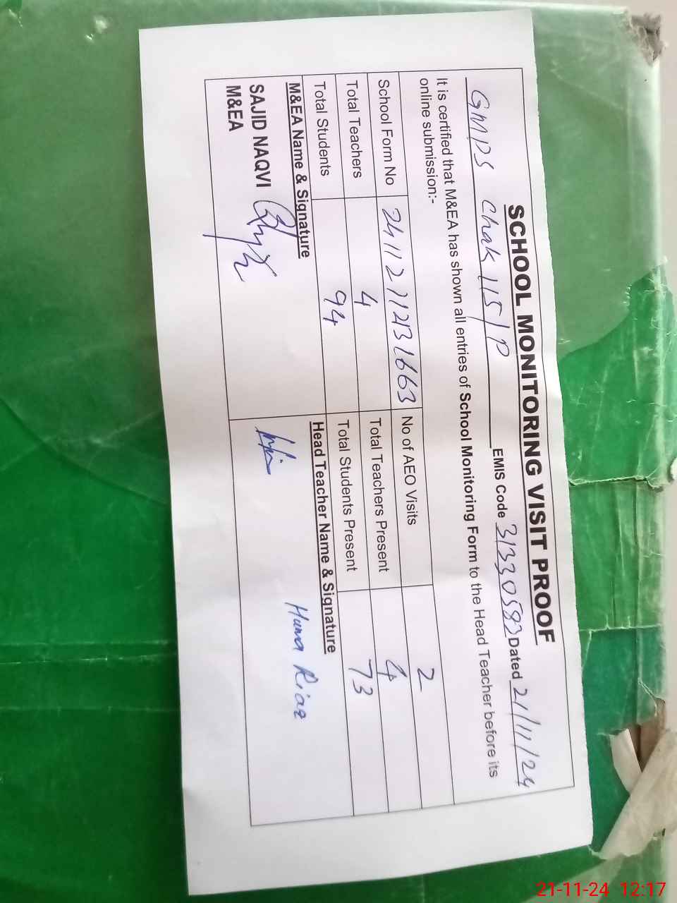 | EMIS Code: 31330583 | Name of School: GMPS CHAK NO.115/P | |||