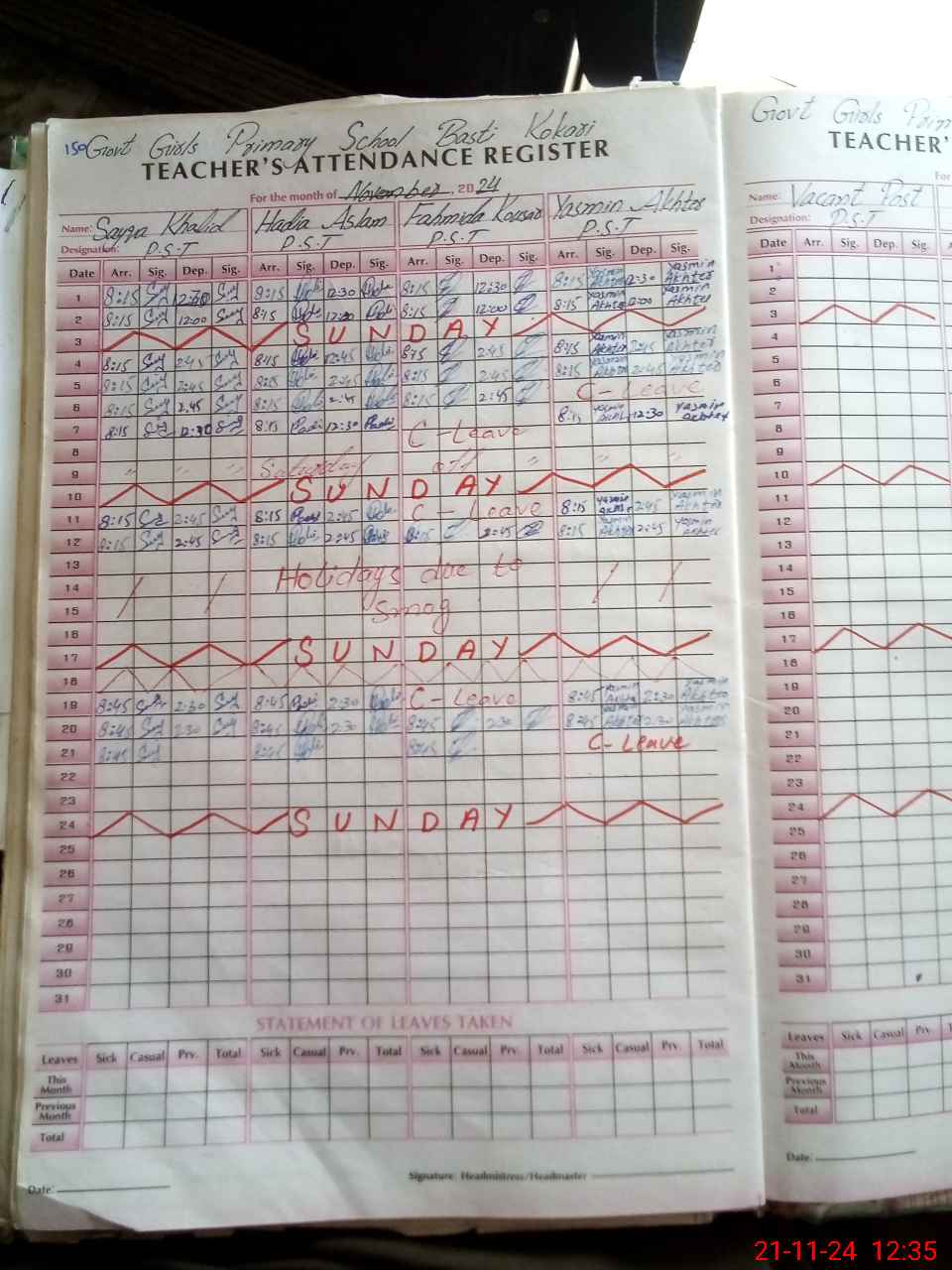 | 31**** | Ha**** Sa**** Sh**** | 1 | 1 | 0 | 0 | 0 | 0 | 0 | 0 | 0 | 0 | 0 | Absent (Un-Authorized) |