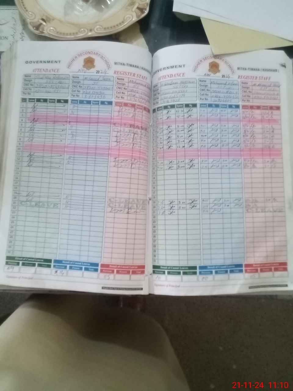 | CNIC | Full Name | Designation | R/C | Absence during last cal. month |