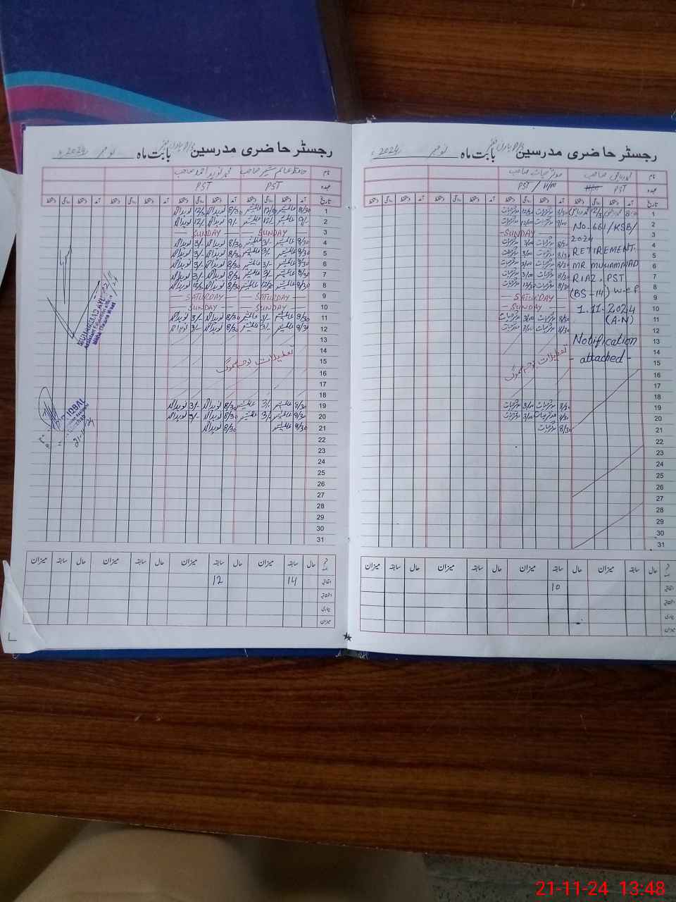 | CNIC | Full Name | Designation | R/C | Absence During Last Calender Month |