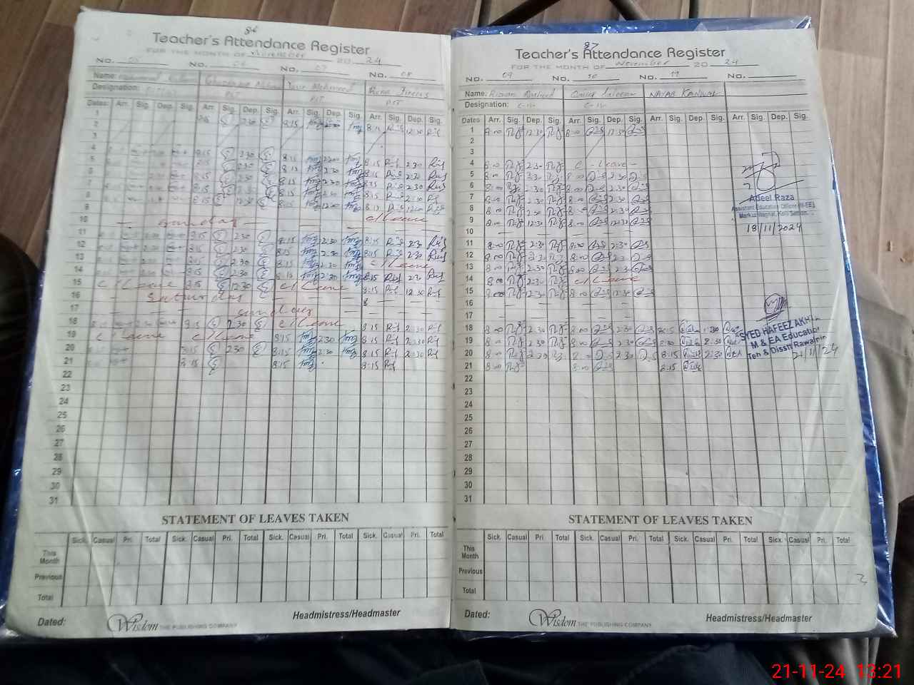 | CNIC | Full Name | Designation | R/C | Absence During Last Calender Month |
