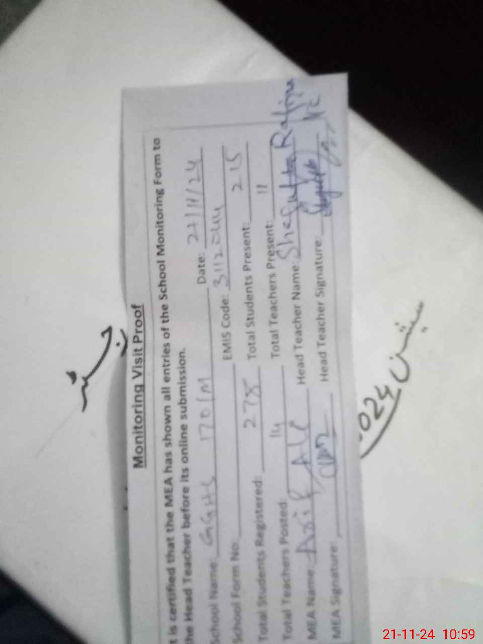 | Name: AS**** NA**** Designation: (School Headmaster's/Headmistress's) H M Phone/Cell Number: 03**** |