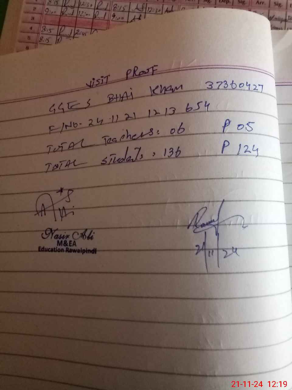 | Name: As**** Na**** Designation: (School Headmaster's/Headmistress's) Est Phone/Cell Number: 03**** |