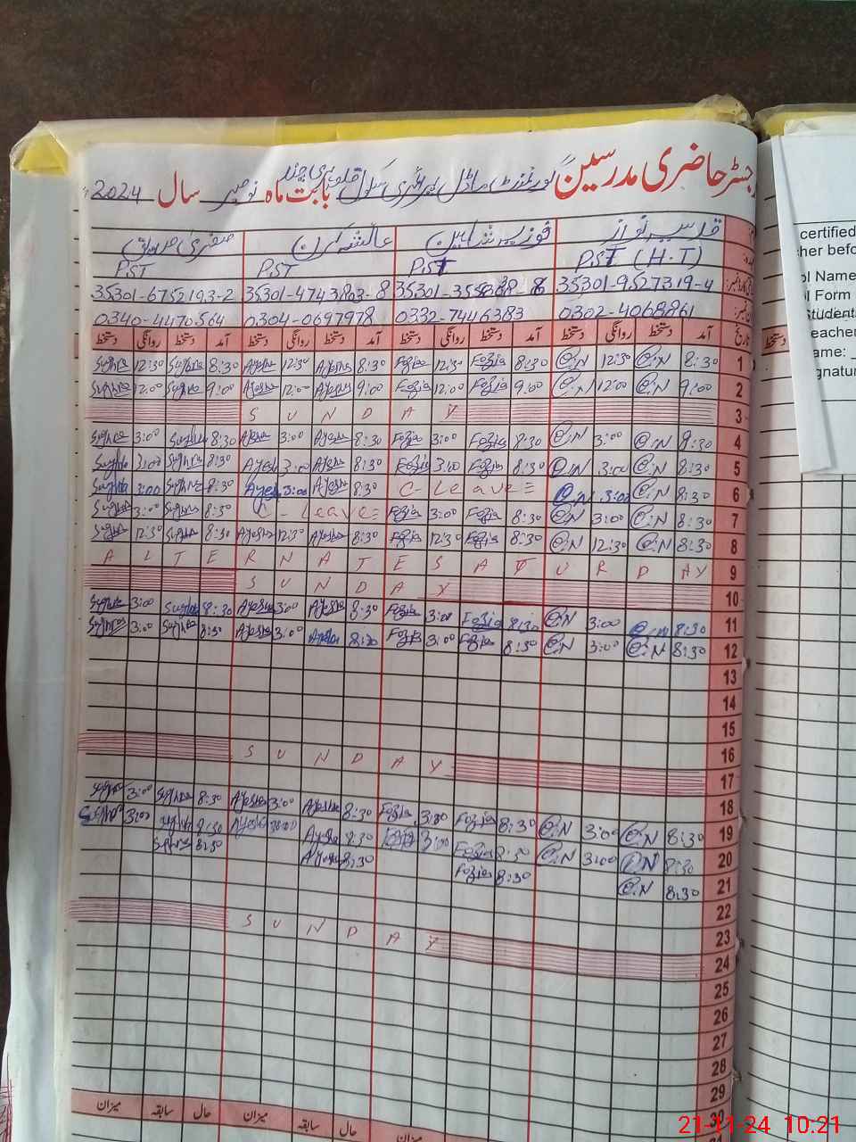 | CNIC | Full Name | Designation | R/C | Absence During Last Calender Month |