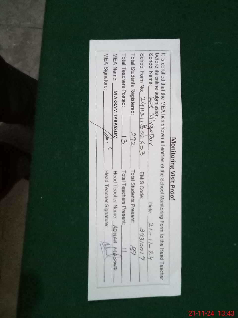 | EMIS Code: 39310019 | Name of School: GHS MIRZA PUR | |||
