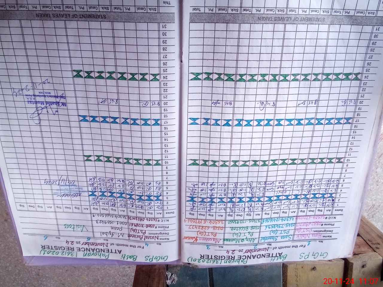 | CNIC | Full Name | Designation | R/C | Absence during last cal. month |