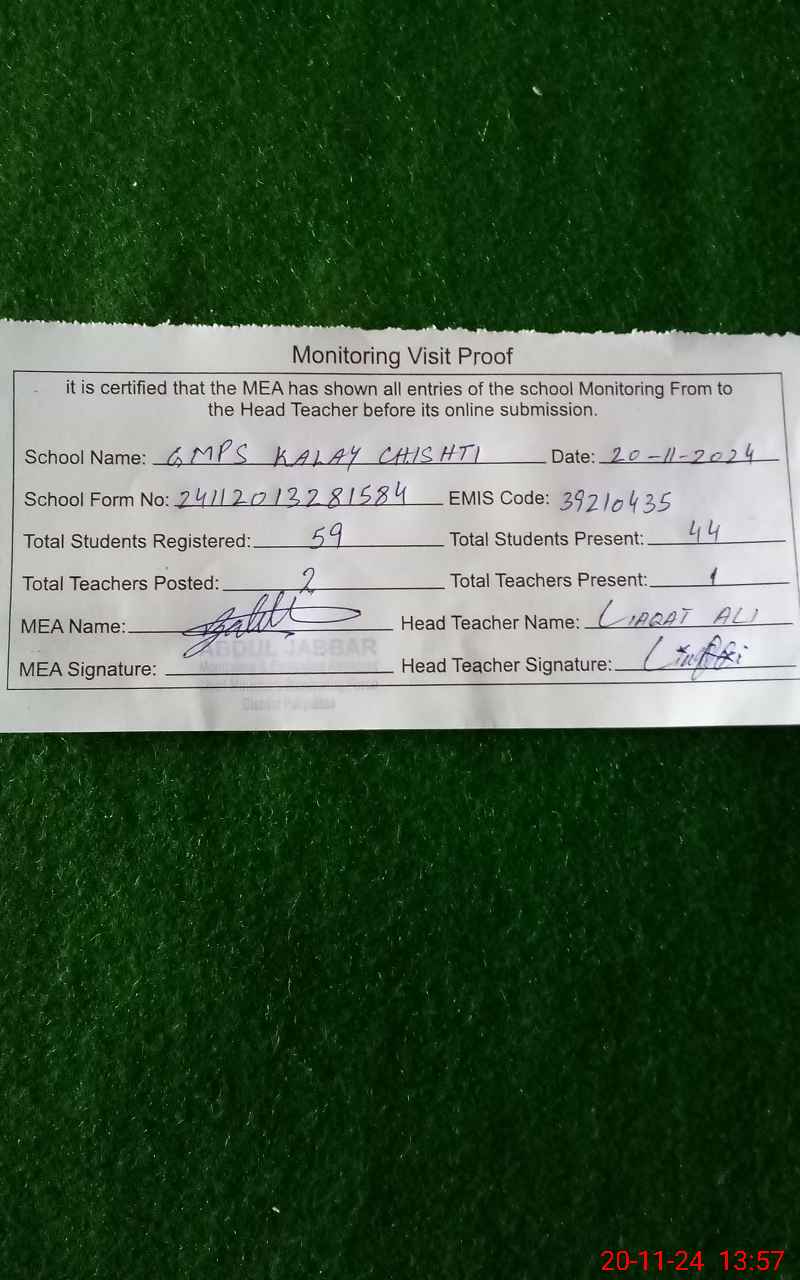 | EMIS Code: 39210435 | Name of School: GMPS KALAY CHISHTI | |||