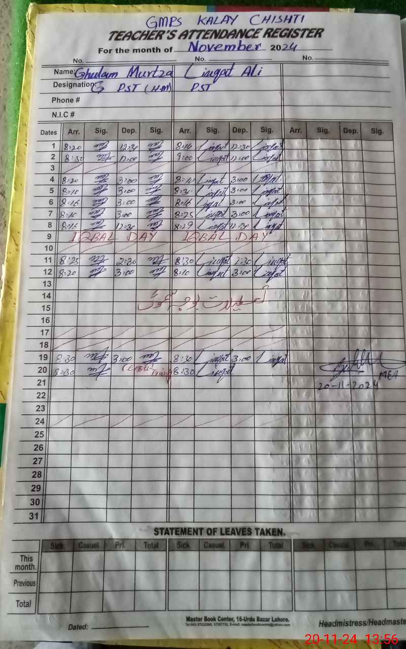 | 36**** | SY**** AH**** RA**** | CHOWKIDAR | Contract | 2 | 0 | 0 | 0 | 0 | 0 | 0 | 0 | 2 | Casual |