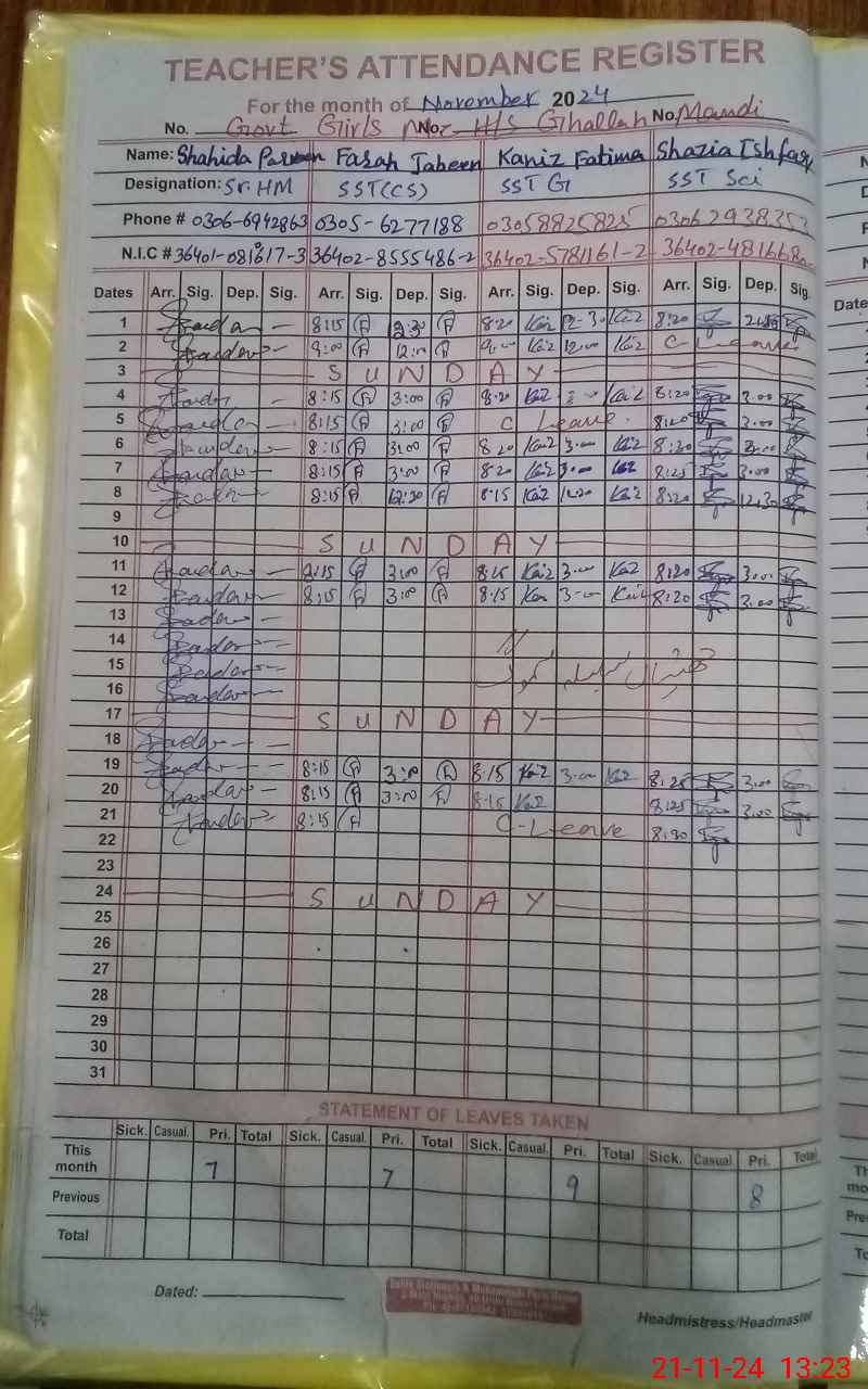 | Name: Sh**** Pe**** Designation: (School Headmaster's/Headmistress's) Sr HEAD MISTRESS Phone/Cell Number: 03**** |