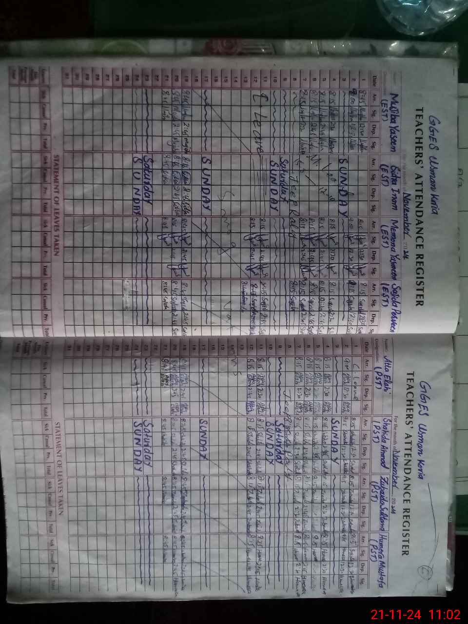 | Leave | Duty | Absent | Maternity | Medical | Ex- Pak |