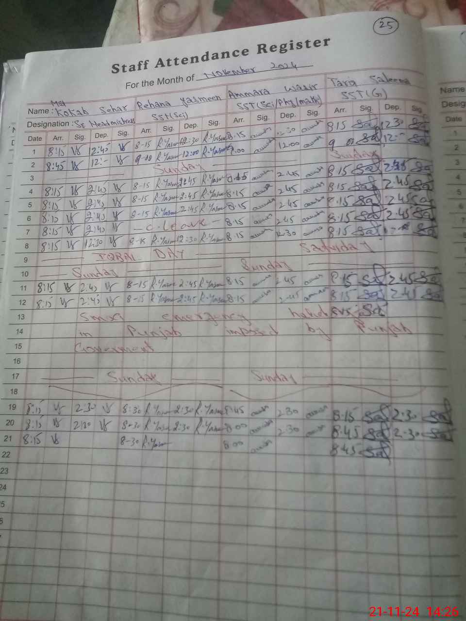 | CNIC | Full Name | Designation | R/C | Absence During Last Calender Month |