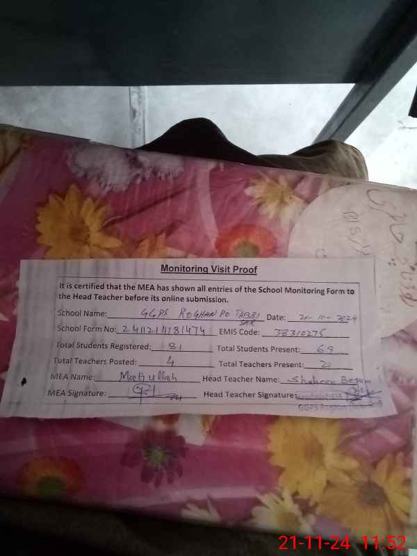 | EMIS Code: 38310275 | Name of School: GGPS ROGHAN P/O TABBI SAR | |||