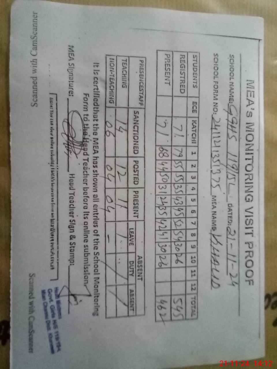 | EMIS Code: 36430090 | Name of School: GGHS 119/15-L, MIAN CHANNU | |||