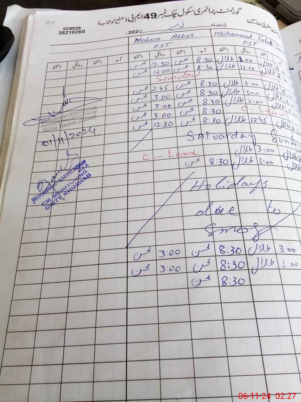 | Name: Mu**** Ha**** Designation: (School Headmaster's/Headmistress's) PST Phone/Cell Number: 03**** |