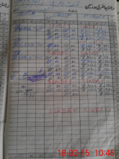 | CNIC | Full Name | Designation | R/C | Absence During Last Calender Month |