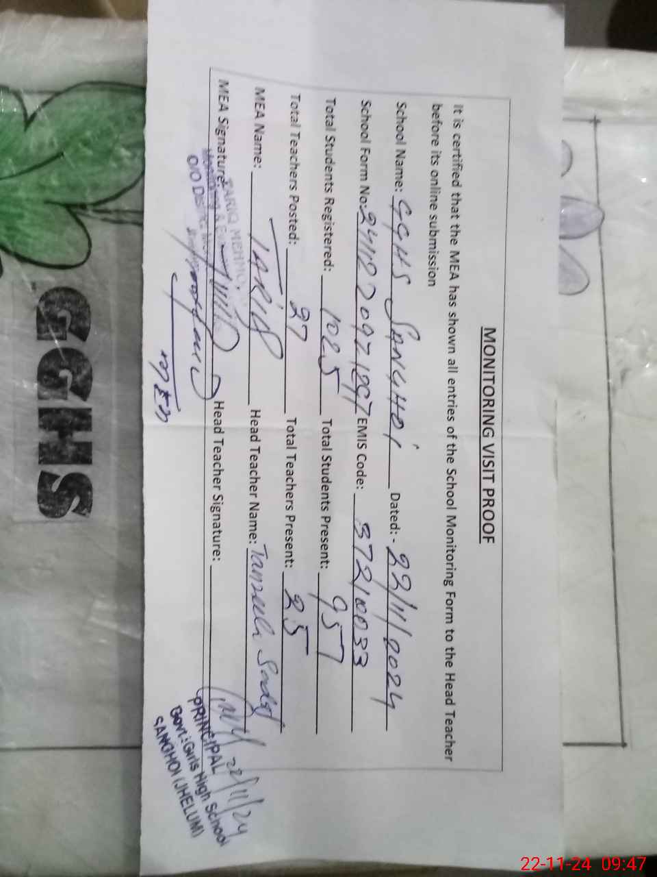 | EMIS Code: 37210033 | Name of School: GGHS SANGHOI | |||