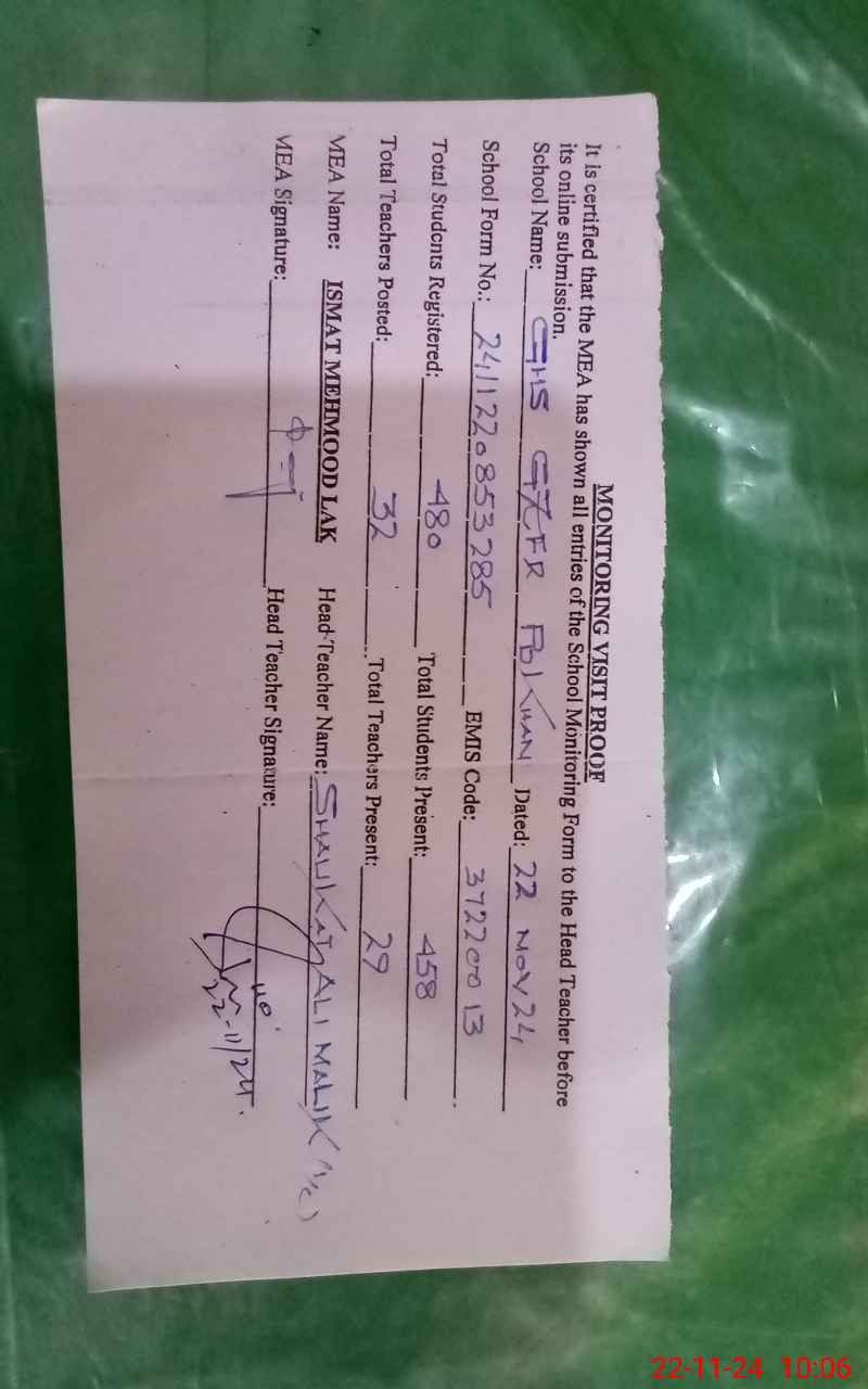 | Attendance Register | Head Teacher | MEA with School | Visit Proof |