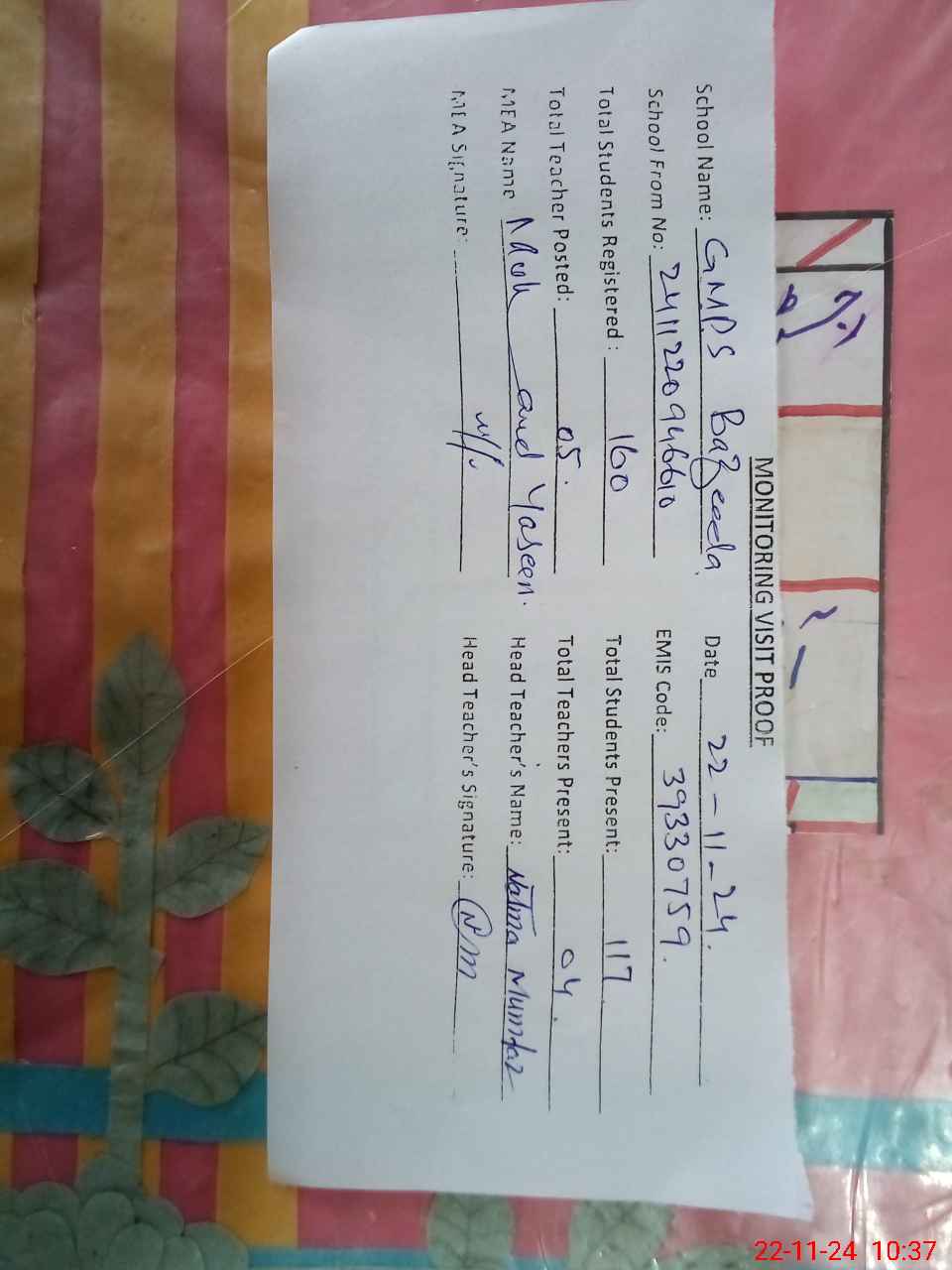 | EMIS Code: 39330759 | Name of School: GMPS CHAK BAZEEDA | |||