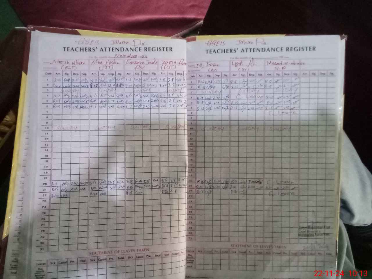 | CNIC | Full Name | Designation | R/C | Absence During Last Calender Month |