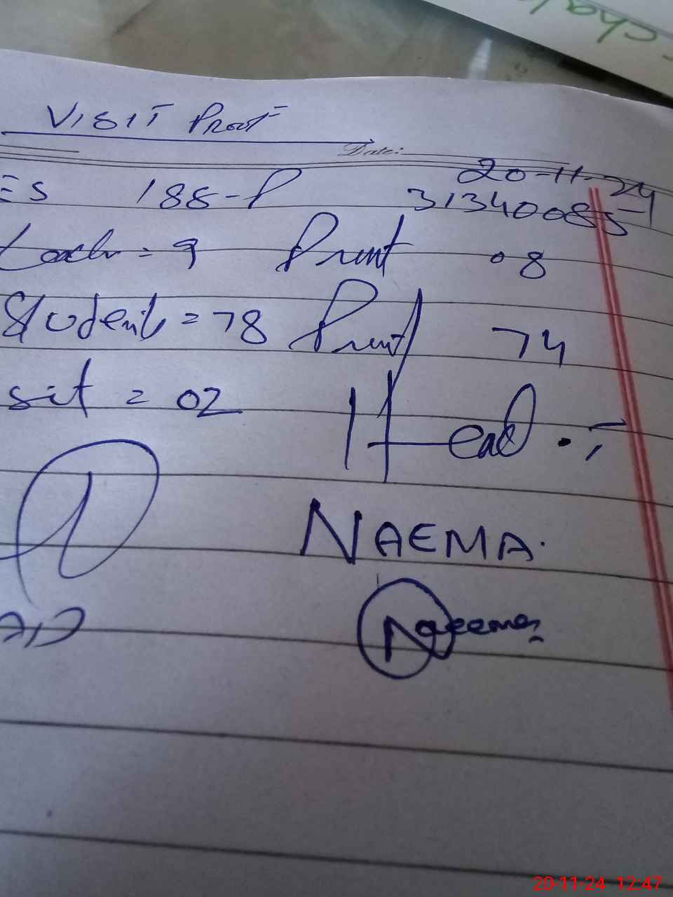 | Name: Na**** Na**** Designation: (School Headmaster's/Headmistress's) SSE Chem Phone/Cell Number: 03**** |