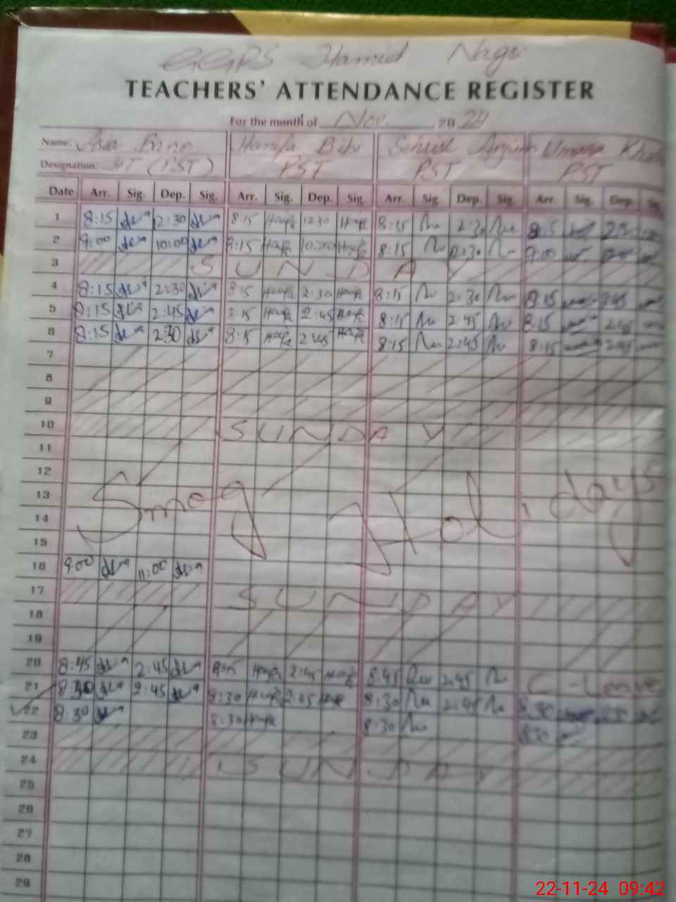 | Monitoring Date: 22-11-2024 | Start Time: 22-11-2024 09:17 AM | End Time: 22-11-2024 09:55 AM | Name of MEA: GH**** AB**** | |