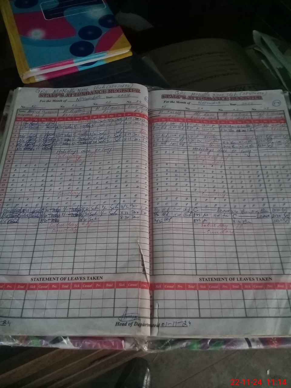 | Leave | Duty | Absent | Maternity | Medical | Ex- Pak |