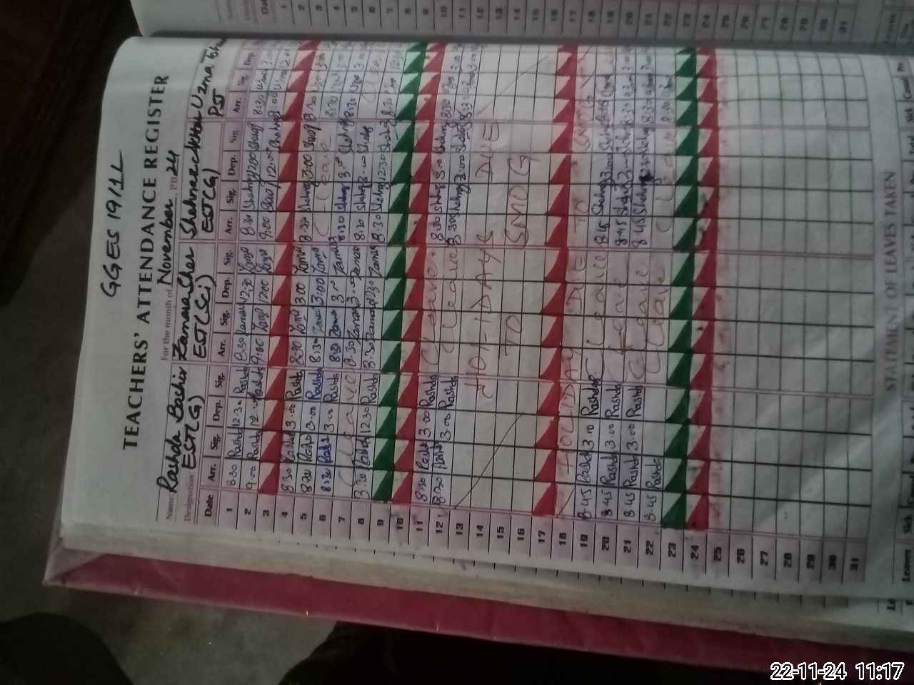 | Leave | Duty | Absent | Maternity | Medical | Ex- Pak |