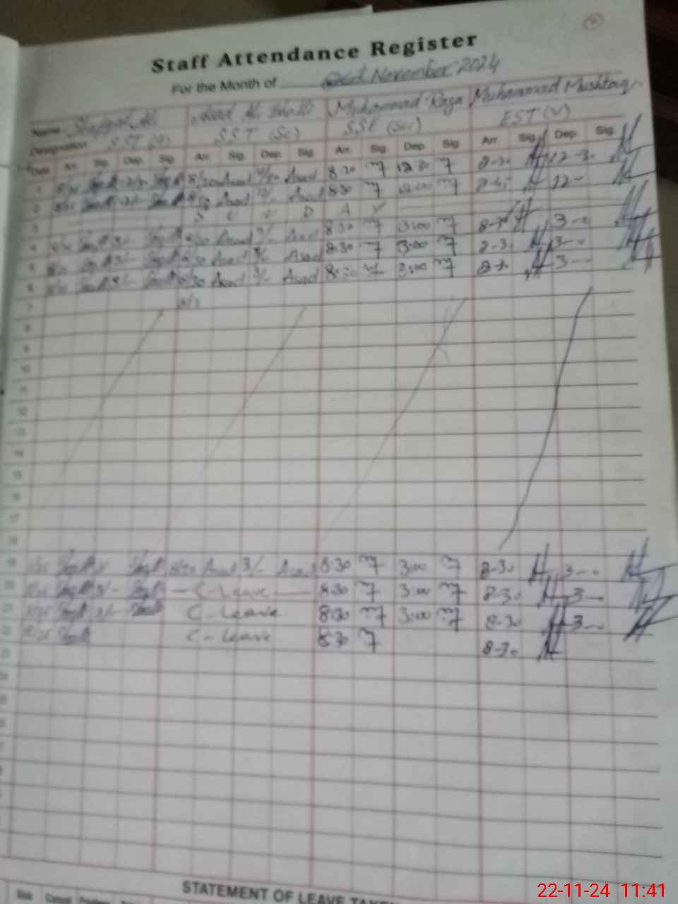 | CNIC | Full Name | Designation | R/C | Absence During Last Calender Month |