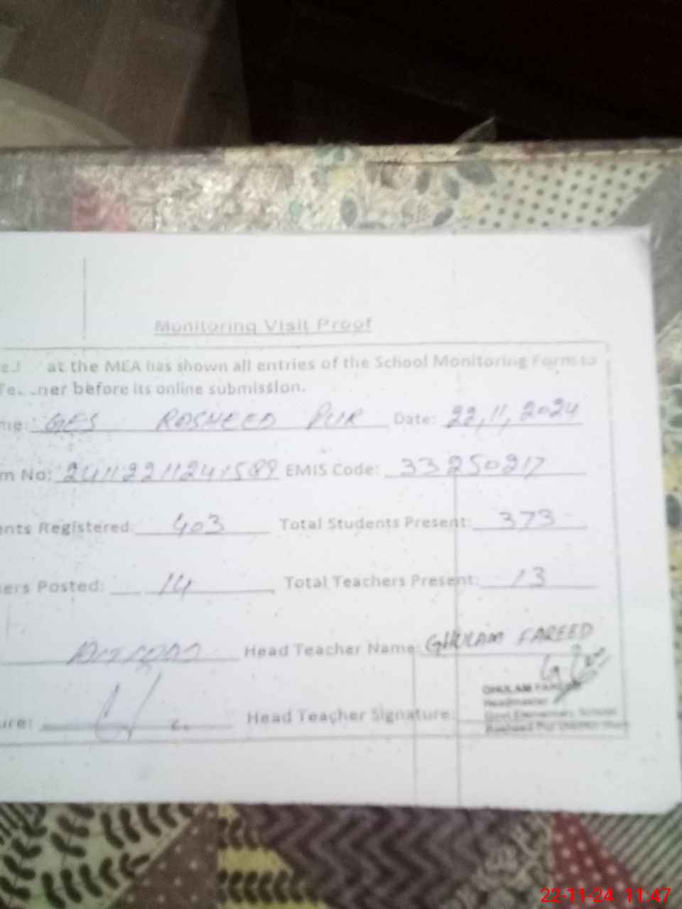 | EMIS Code: 33250217 | Name of School: GES RASHEED PUR | |||