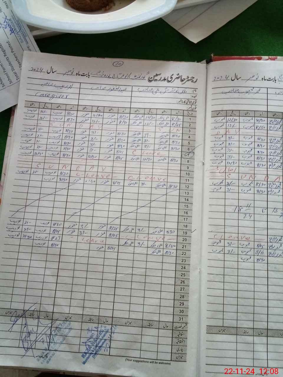 | CNIC | Full Name | Designation | R/C | Absence During Last Calender Month |