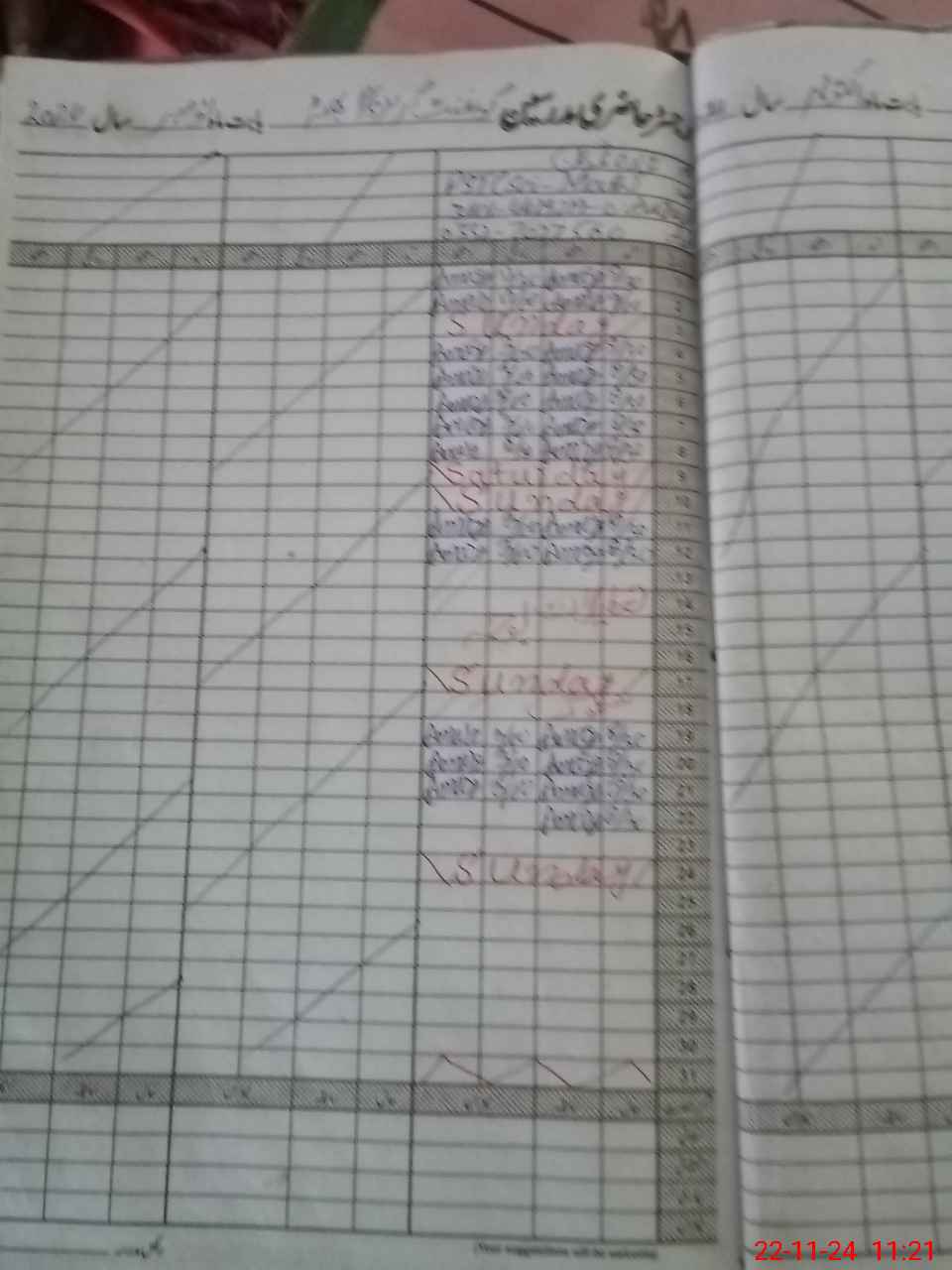| CNIC | Full Name | Designation | R/C | Absence During Last Calender Month |