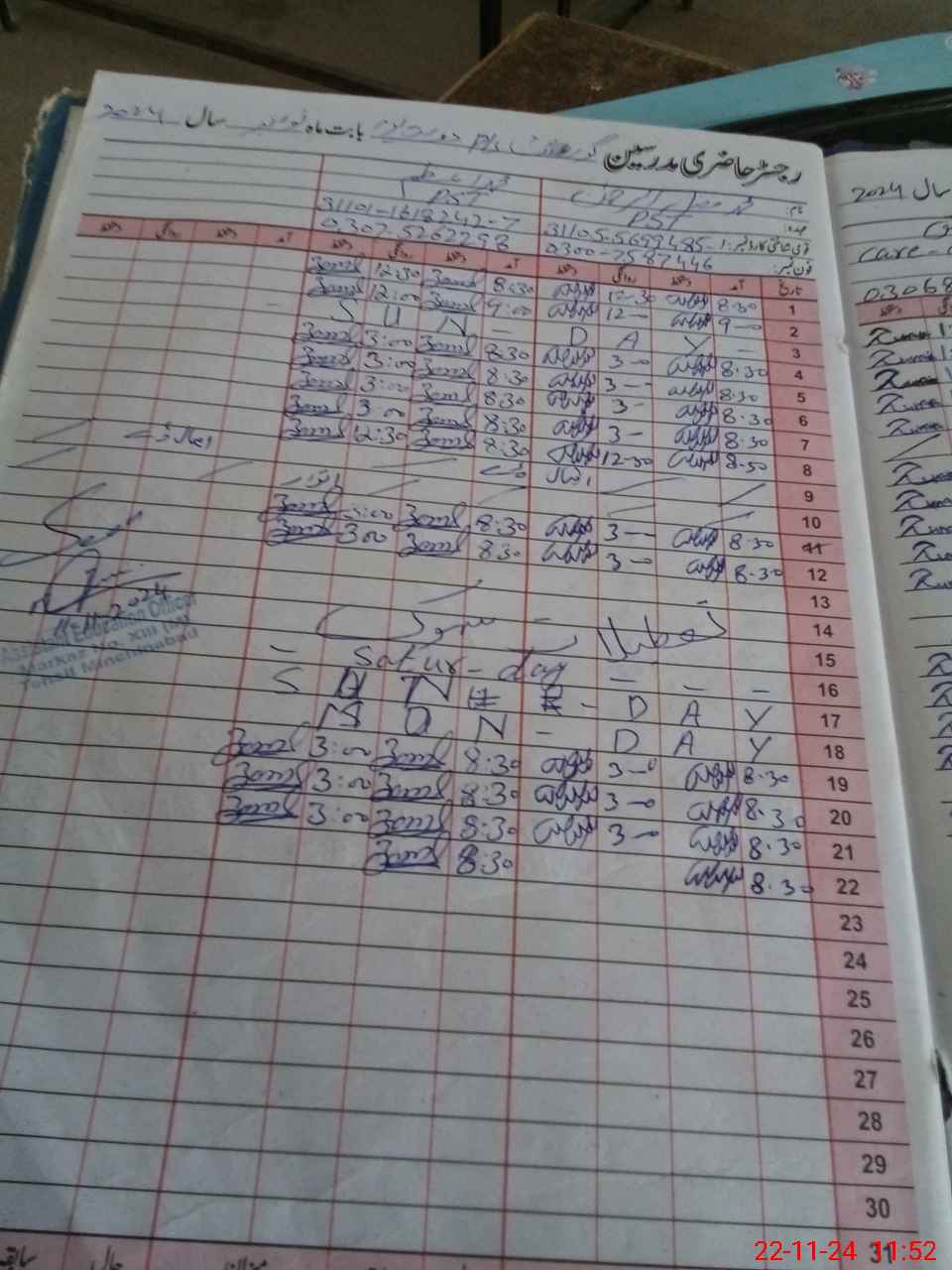| CNIC | Full Name | Designation | R/C | Absence During Last Calender Month |