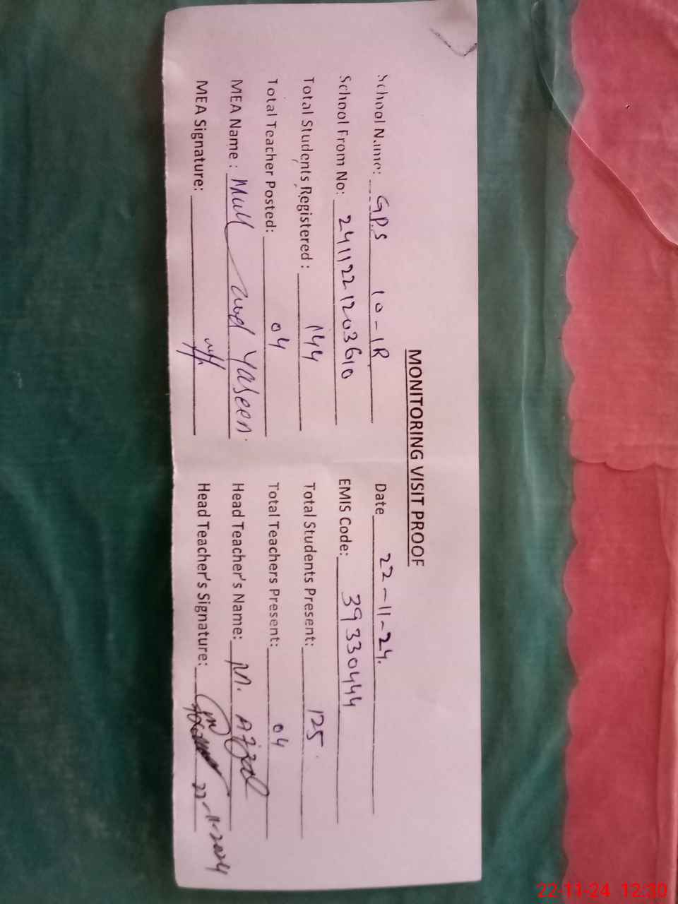 | EMIS Code: 39330444 | Name of School: GPS CHAK NO. 10/1-R | |||