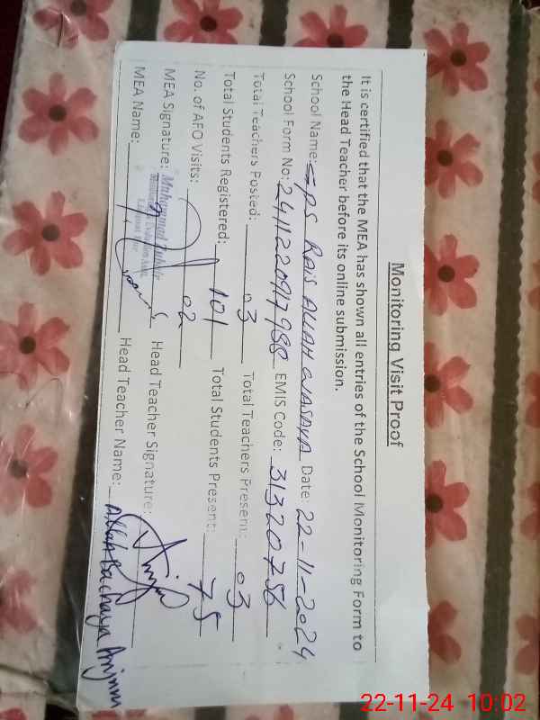| EMIS Code: 31320756 | Name of School: GPS RAIS ALLAH VASAYA | |||