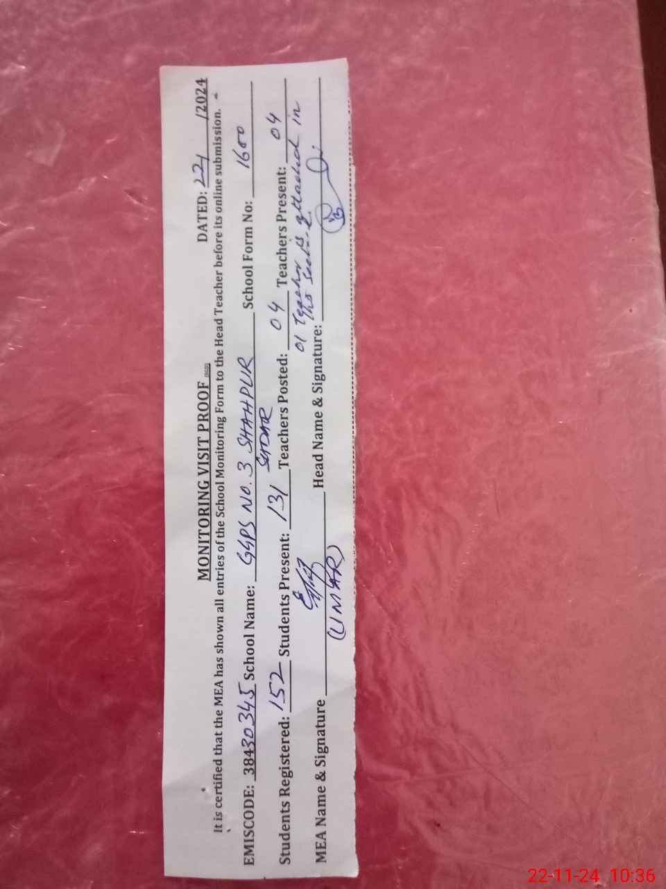| EMIS Code: 38430345 | Name of School: GGPS NO.3 SHAH PUR SADDAR | |||