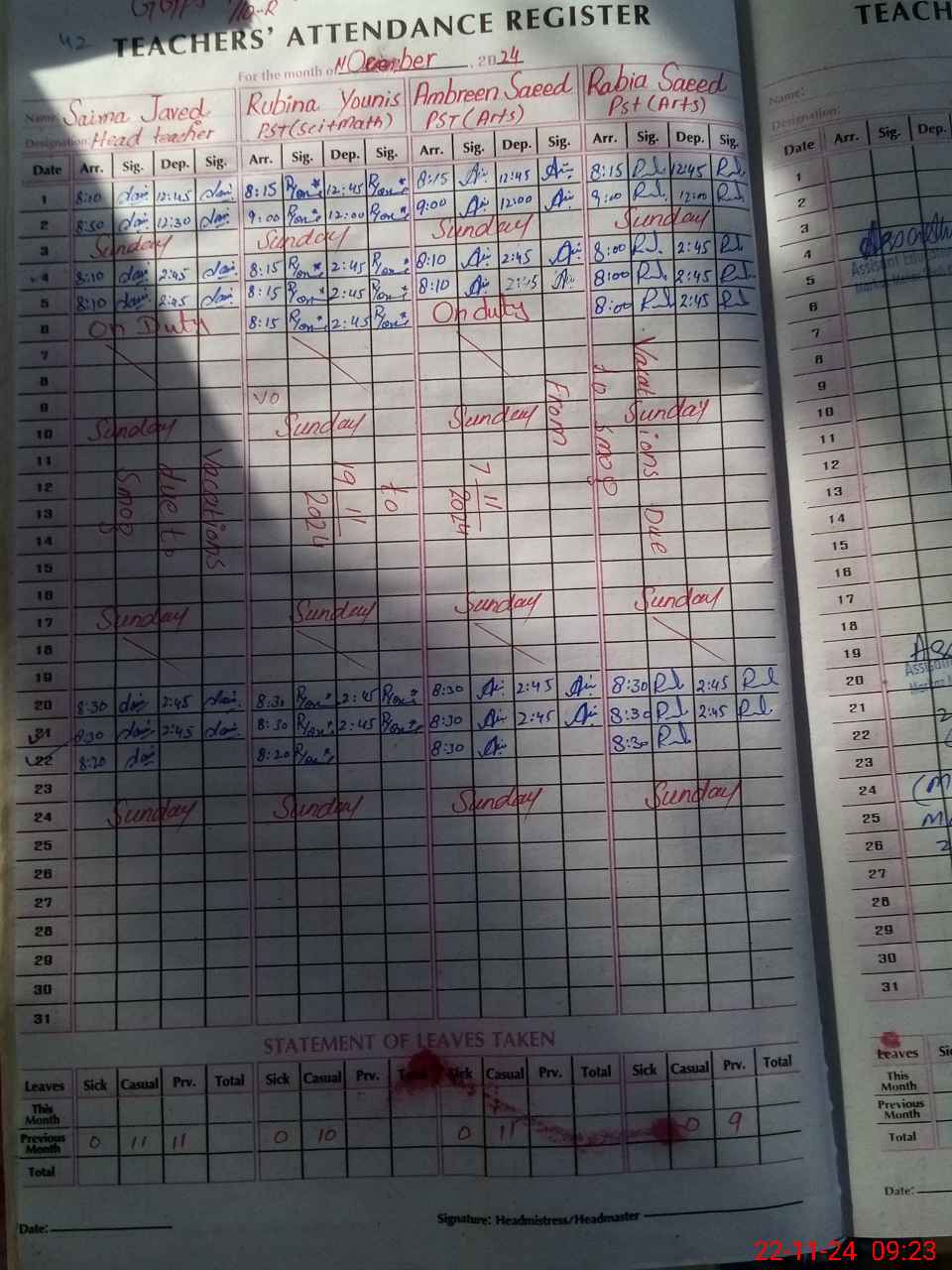 | Leave | Duty | Absent | Maternity | Medical | Ex- Pak |