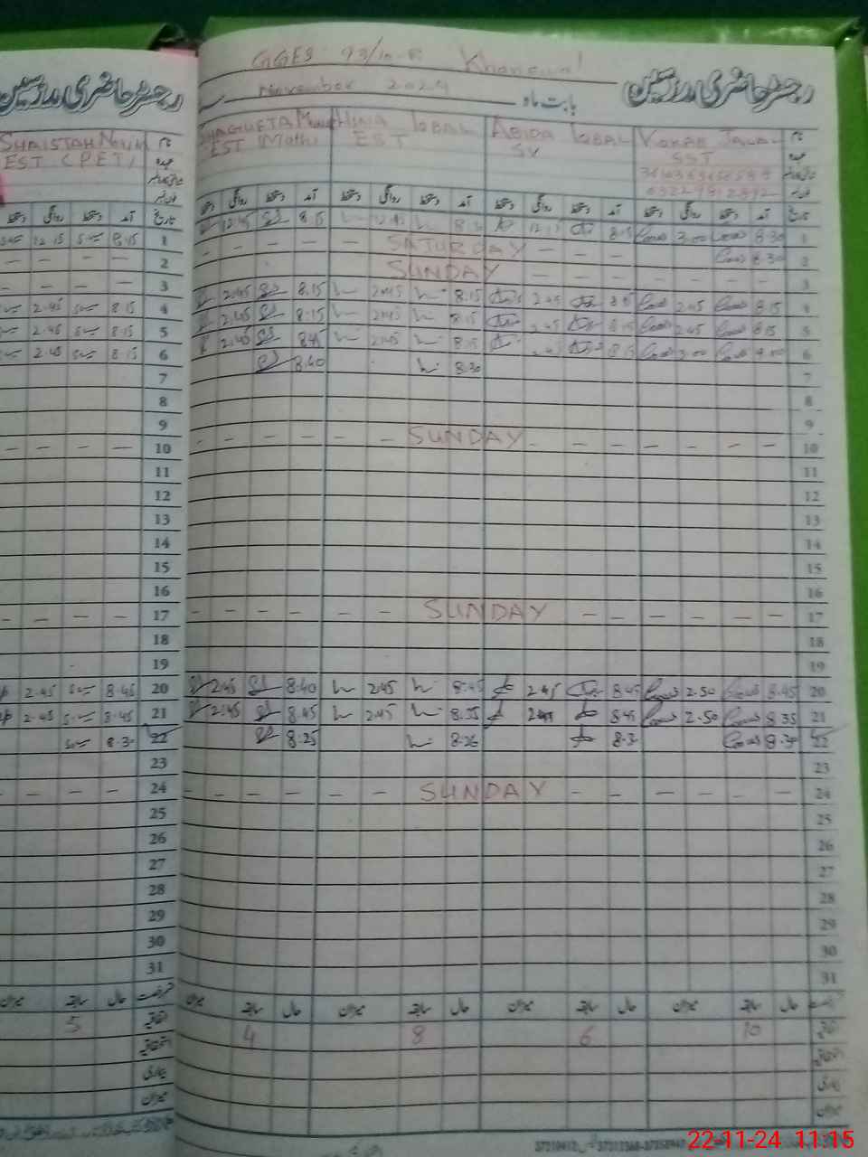 | CNIC | Full Name | Designation | R/C | Absence During Last Calender Month |
