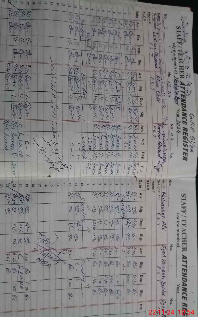 | Name: IS**** AH**** Designation: (School Headmaster's/Headmistress's) PST Phone/Cell Number: 03**** |
